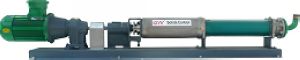 单螺杆泵是为离心机供浆的理想设备,不用剪切和搅拌泥浆。主要部件有螺杆轴(转子),螺杆套管(定子)。由于两部分独特的几何形状,它们分别产生挤压量。废浆随轴流动,内部流速低,保持容量,压力稳定,这样不会产生涡旋和搅拌。泵的螺杆由不锈钢制成,GN全不锈钢机身螺杆泵可选。螺杆泵能够用耦合器,或通过变速电机调节速度,三角V形带,齿轮箱等驱动。G系列螺杆泵附件少,兼容的结构,小体积,易保养,转子和定子是泵的易损件,方便替换。定子由人造橡胶材质制成,在转送高黏度和硬的悬浮物的废浆方面比其他的泵有特殊的优势。