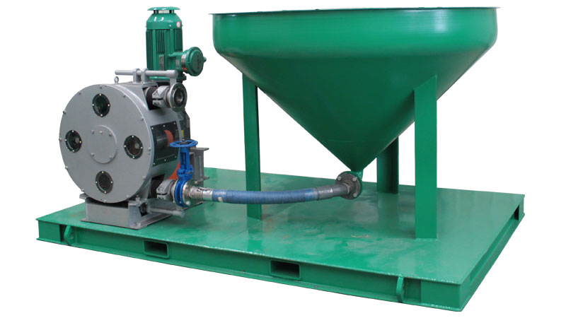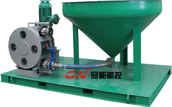 钻屑输送装置由锥形钻屑接收漏斗和钻屑输送泵以及控制装置构成,能够接收固控设备用螺旋输送机输送过来的钻屑和钻井废弃物。钻屑输送泵由电机驱动,通过真空作用吸取钻屑,输送给钻屑干燥筛或者钻屑甩干机处理。钻屑输送泵具备较强的自吸能力,专门用于输送高粘度高固含量耐磨耐酸耐腐介质,且无密封结构输出压力高。