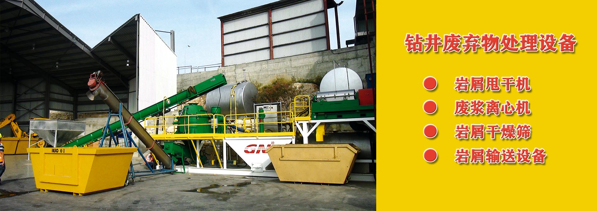 冠能模块化废浆处理系统是将不同功能的设备制作成独立的小模块,包括钻屑输送装置、干燥筛装置、泥浆中转装置、甩干机支架模块、撬装离心机模块和标准岩屑盒。