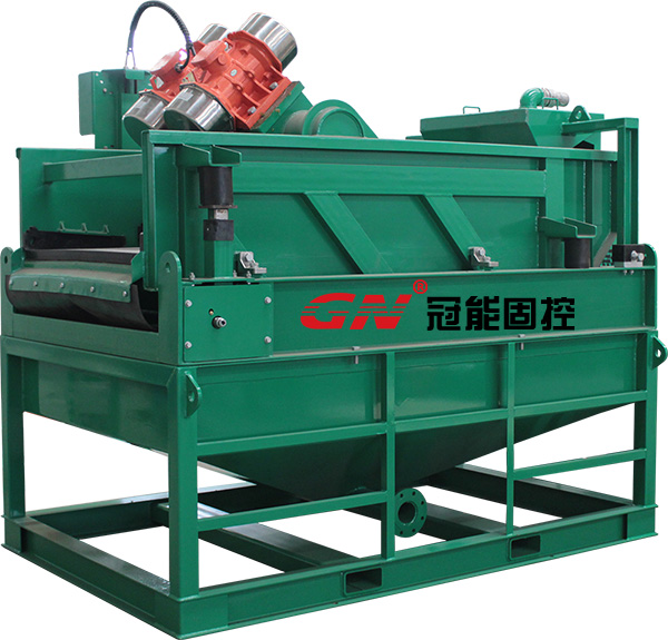 干燥筛装置由冠能钻屑干燥筛和泥浆接收罐组成,能够处理固控设备排出的钻井废弃钻屑,排出较干燥的钻井岩屑用于进一步后处理。位于钻屑干燥筛底部的收集罐为锥形设计,便于清洗不易积砂,能够接收经过干燥筛处理后的泥浆,并且在罐体的底部有出浆口可以连接到离心机供浆泵。冠能干燥筛进浆漏斗可以满足螺旋输送机进浆和钻屑输送泵管式进浆。
