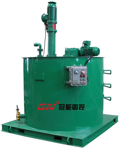 冠能泥浆中转装置由圆桶式中转罐,液下渣浆泵,搅拌器,和电控系统构成。能够用于接收钻井泥浆作为中转储备,输送到处理设备中去。通常用于接收钻屑甩干机排出的液相物料,输送到离心机中进行处理。也可以用作其他用途的泥浆中转输送用途。配备的搅拌器能够有效防止泥浆的沉积。