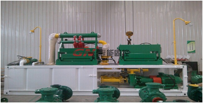 一个储浆量为15m³泥罐设计有足够的空间进行泥浆的回收及储存,又很好的满足了设备方便运输的要求。2台15HP的 GNSB4x3-11型离心泵,其中一台是用于输送泥浆到去除泥器,而另一台用于混合泥浆。为了防止泥浆罐中的固体沉降,我公司也为客户提供了泥浆搅拌器和泥浆枪等设备的选择。