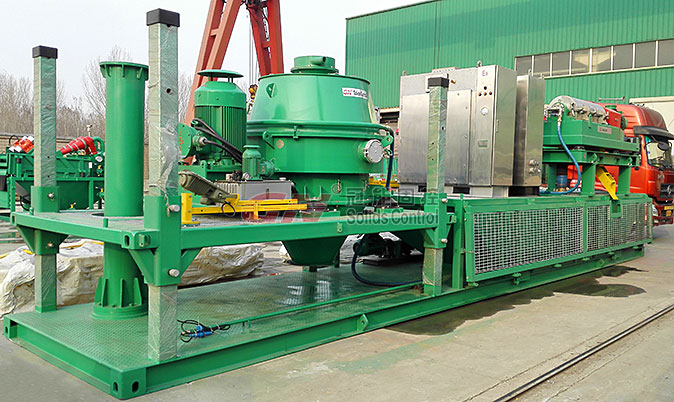 该系统主要包括一台钻屑甩干机、一台用于废浆处理的高速变频卧螺离心机,并配有泥浆输送泵系统,该撬装式设计,可以完成钻井废物屑干燥处理,钻井液的循环利用,并且移动方便,适合随钻及集中处理工况。