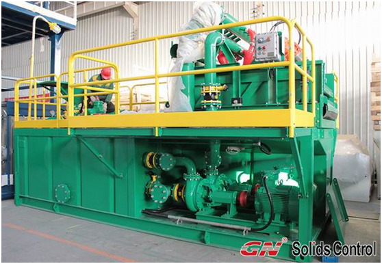 该系统是采用了两级净化系统设计,小颗粒分离直径为20微米,完全可以满足泥浆泵的工作需要,此系统 处理量为120m³米,可以保证300吨以下钻机的全马力下工作的泥浆需要。