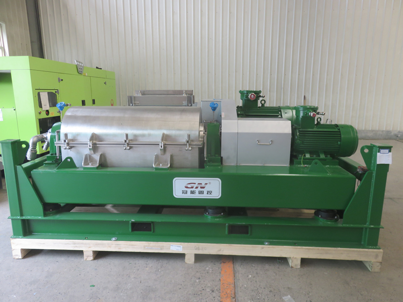 2、两相卧螺离心机经冠能振动筛筛分之后的油泥进入冠能两相卧螺离心机进行分离,分离后固相含油率≤5%,液相为主要为油和水,同时含有少量固相。冠能两相卧螺离心机具有以下特点: