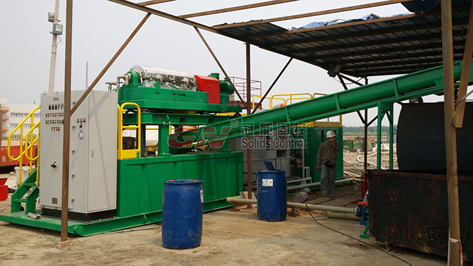 冠能离心机通过化学絮凝处理中海油油基污泥现场视频